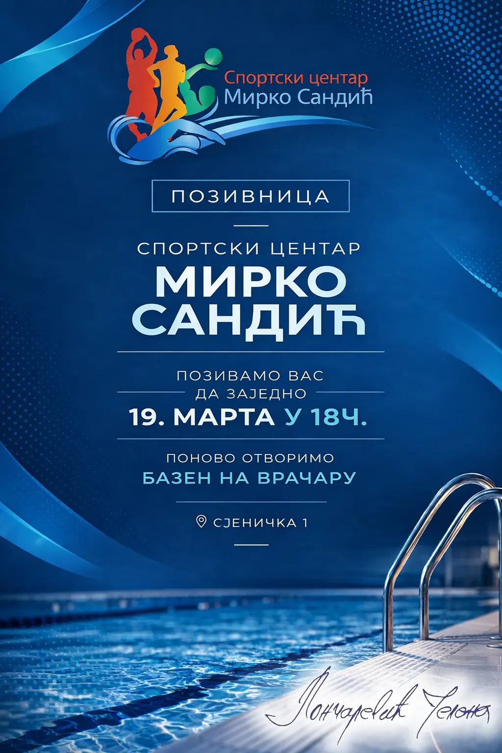 Добродошли у Спортски центар „Мирко Сандић“! Наша мисија је да вам омогућимо активан и здрав живот у пријатном и савремено опремљеном простору. У нашем центру можете уживати у затвореном базену, модерној теретани, салама за групне тренинге, као и различитим спортским и рекреативним програмима за све узрасте. Било да долазите да се рекреирате, учите пливање или учествујете у нашим програмима за децу и одрасле, ту смо да вам пружимо подршку и мотивацију на сваком кораку. Придружите се нашој заједници и уживајте у спорту и здравом животу са нама!